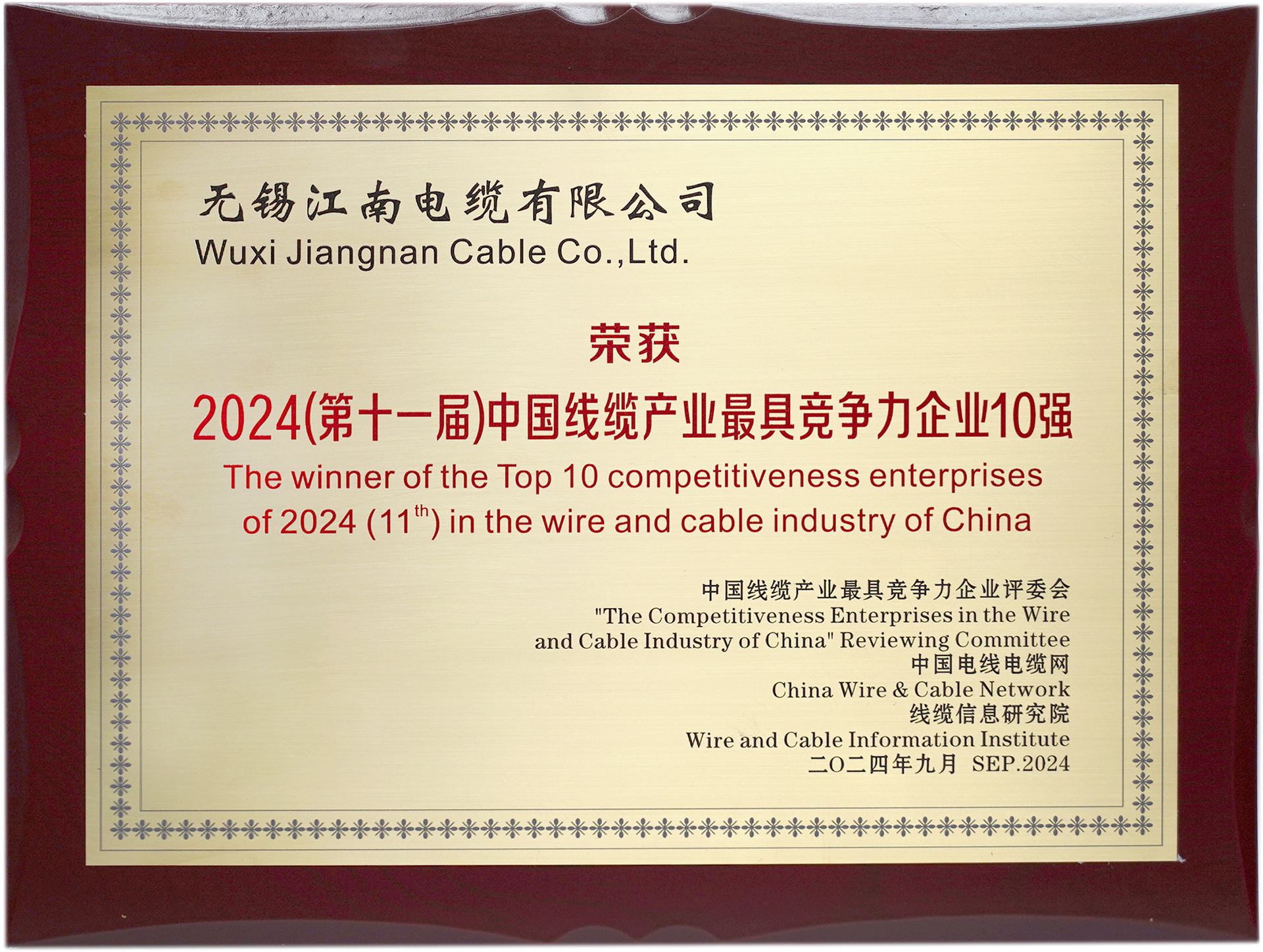 2024(第十一屆)中國線纜產業最具競爭力企業10強